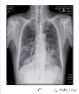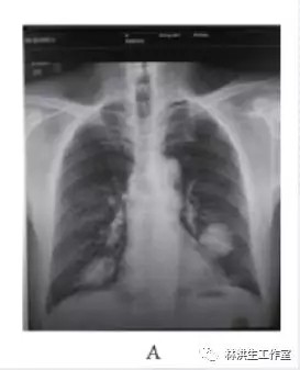 A: 2013 年 8 月 23 日发病时,胸部 CR 片显示双侧肺肿物;